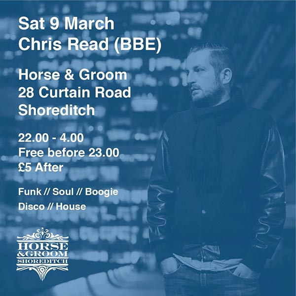 Saturday at Horse & Groom: Chris Read (BBE Records).