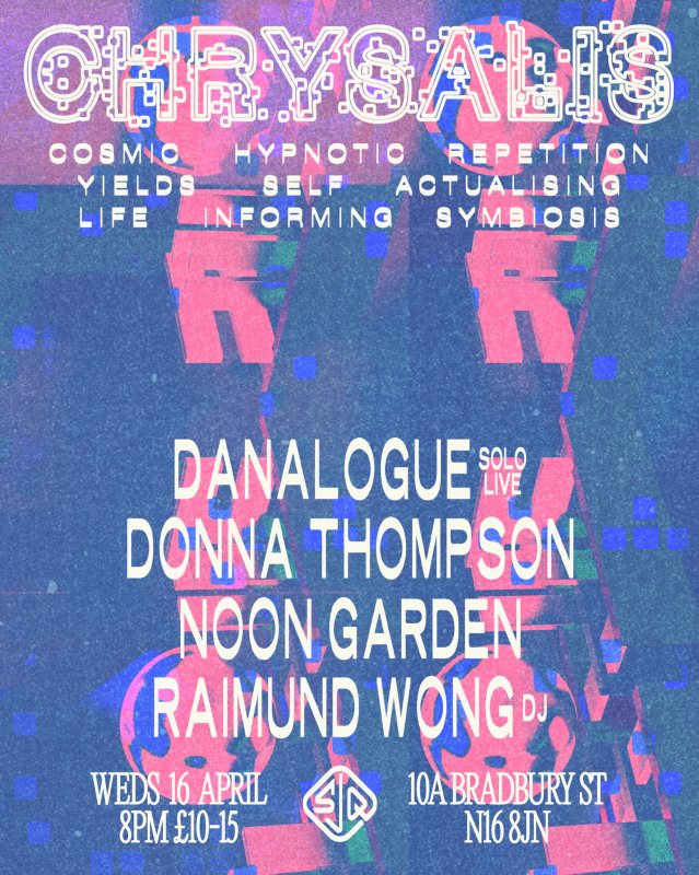Chrysalis returns with Danalogue (solo), Donna Thompson, Noon Garden & Raimund Wong (DJ)