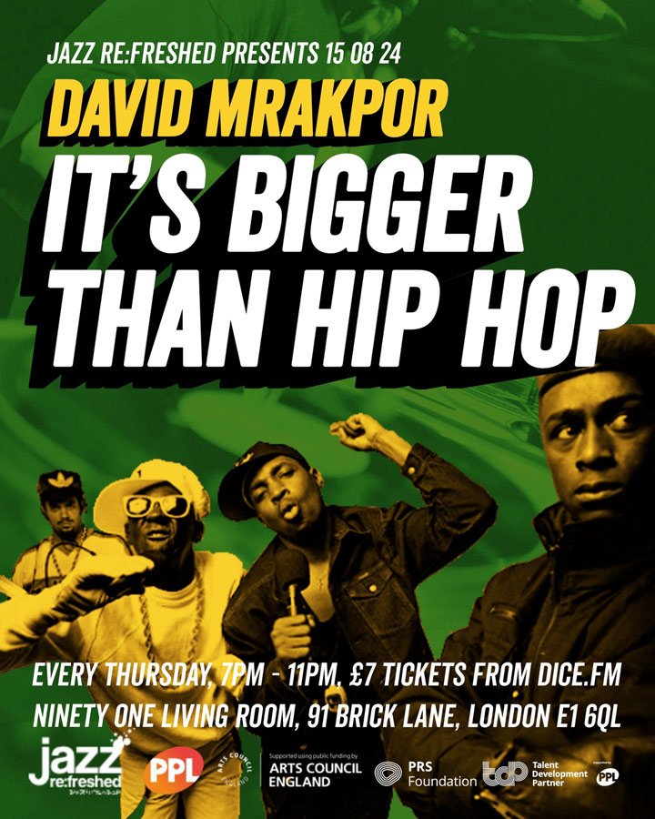 LIVE BAND lead by multi-instrumentalist David Mrakpor, performing cover versions of essential Hip Hop classics.