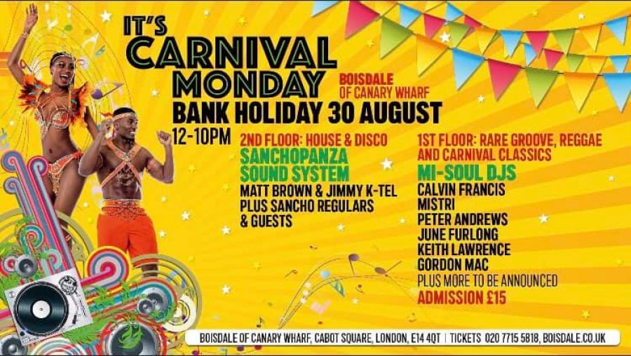 It's Carnival Monday @ The Boisdale Club Canary Wharf, London