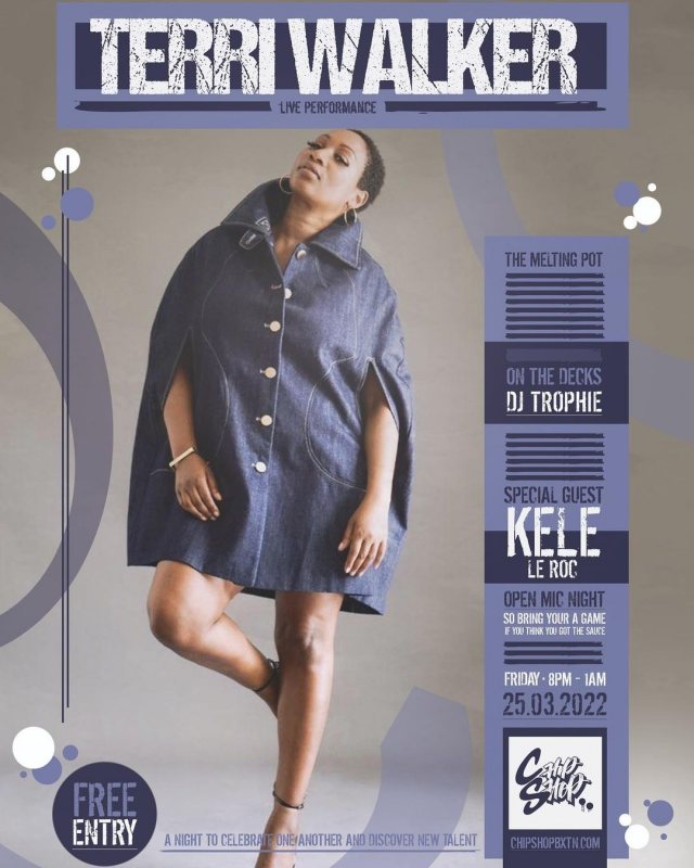 Terri Walker (Live) + Special Guest Kele Le Roc + DJ Trophie + Open Mic.